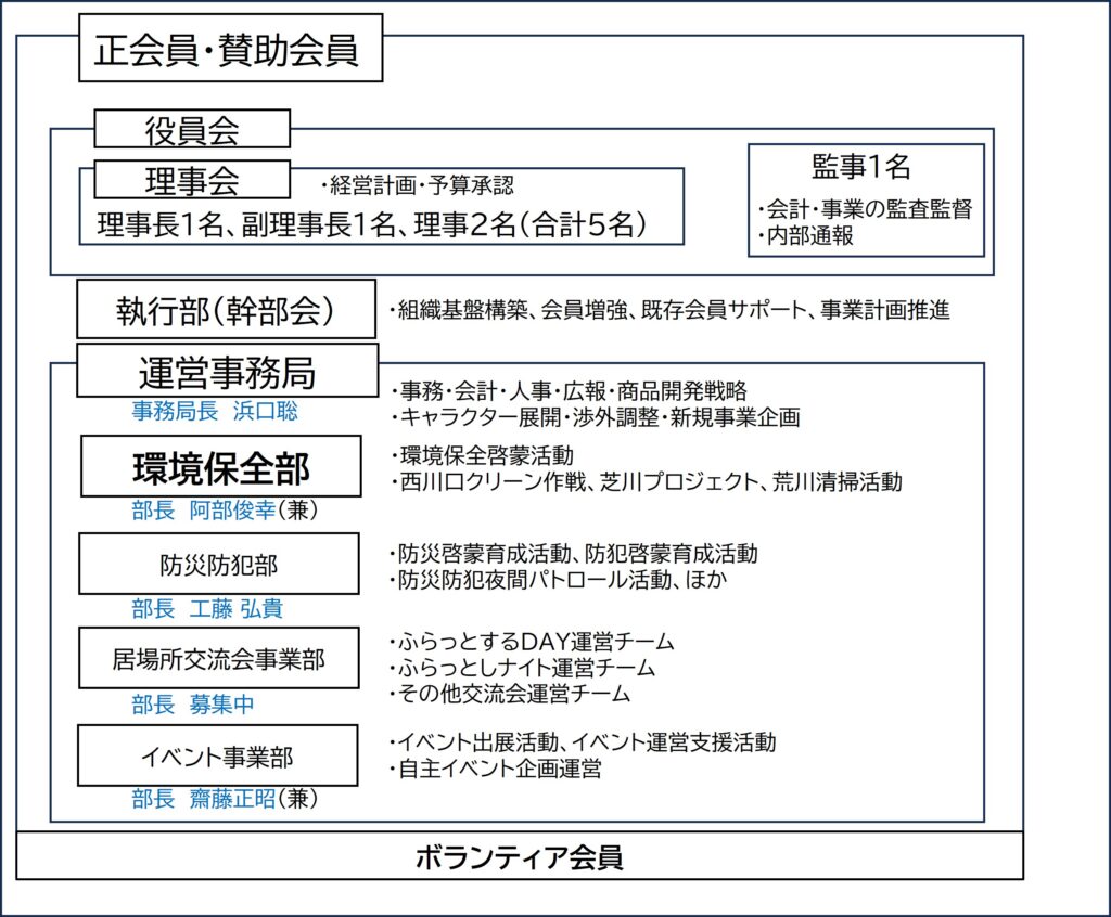 今後さらに地域へ貢献できる団体として成長するため、下記の通り体制を整備いたしましたのでご報告いたします。