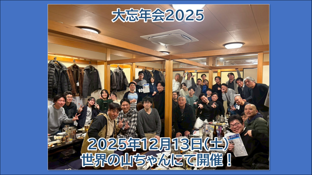 長谷川理事長が一番やりたかった活動がこの大忘年会2025という企画。大人数でどんちゃん騒ぎをするという一年の最大で最強の企画が開催されました。日本人が持つまさに祭り魂の総集編のようなものが忘年会や新年会です。このご時世な … 続きを読む 【報告】交流会「大忘年会2025」参加者36名にて開催!!今年最大級!!川口市内のNPO法人としては最大規模!