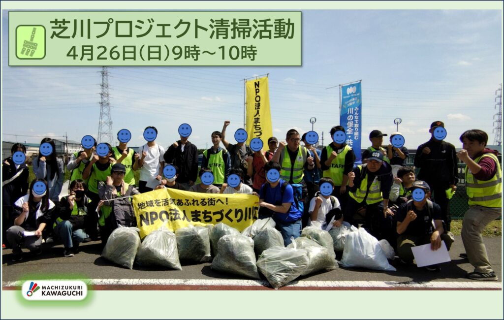 4月26日9時より、新芝川あずま橋付近にて清掃活動を実施いたしました。
